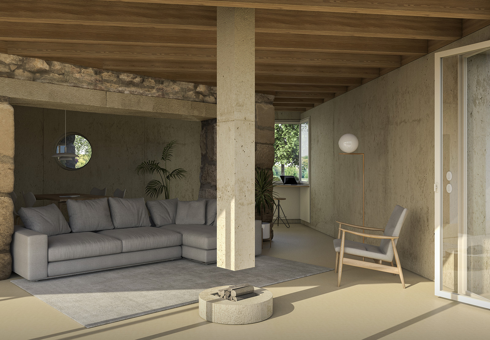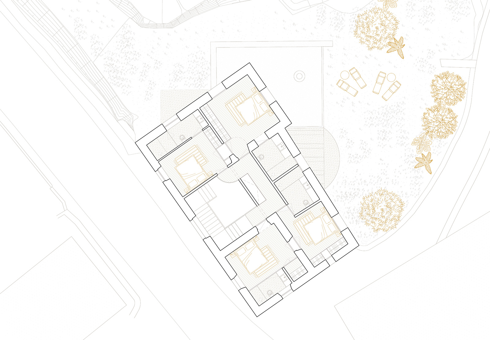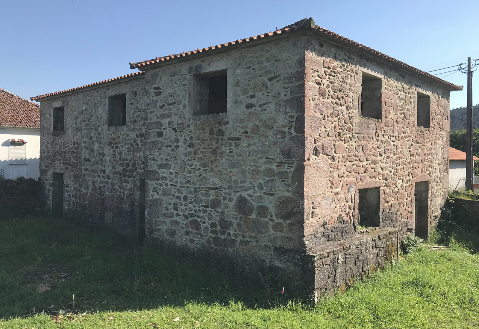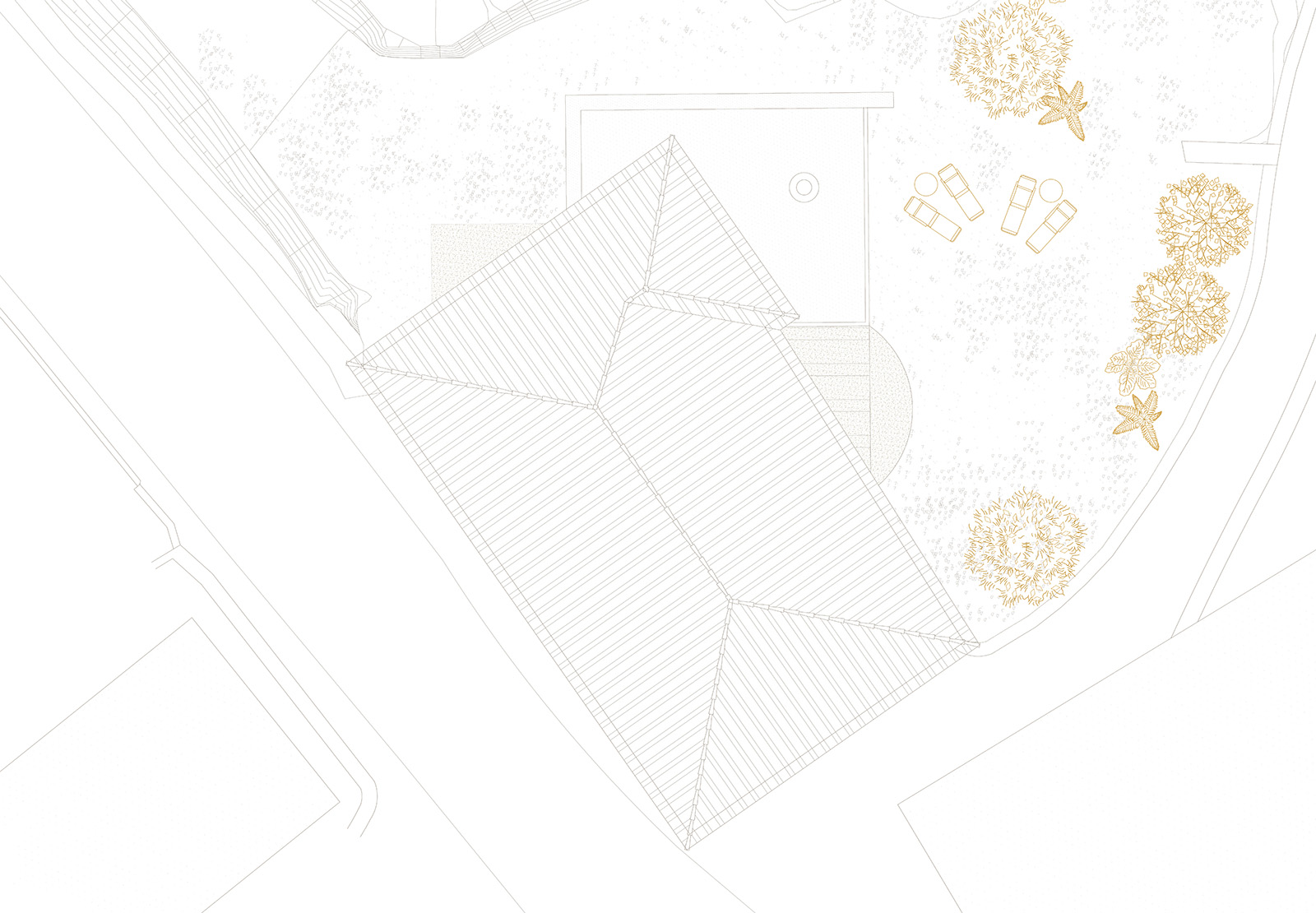 A new room in 90 degrees Dois elementos maciços invadem uma construção existente como catetos, roubam-lhe massa e deixam-na liquidificar na relação com o exterior.